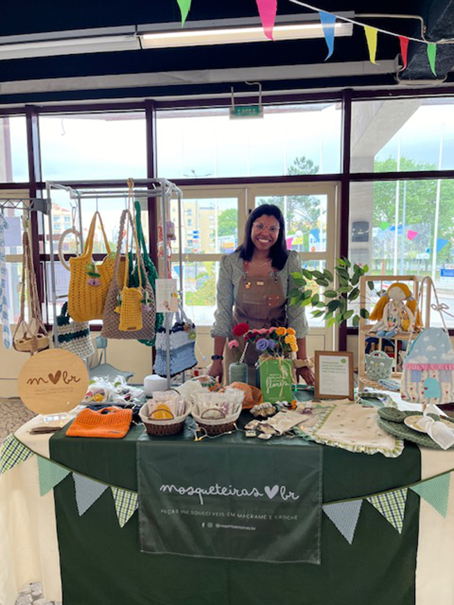 Uma das participantes foi Daniela, fundadora das Mosqueteiras.br, que veio do Brasil com um negócio de crochet que realiza em conjunto com a tia e com a irmã, numa família de vários artistas.
