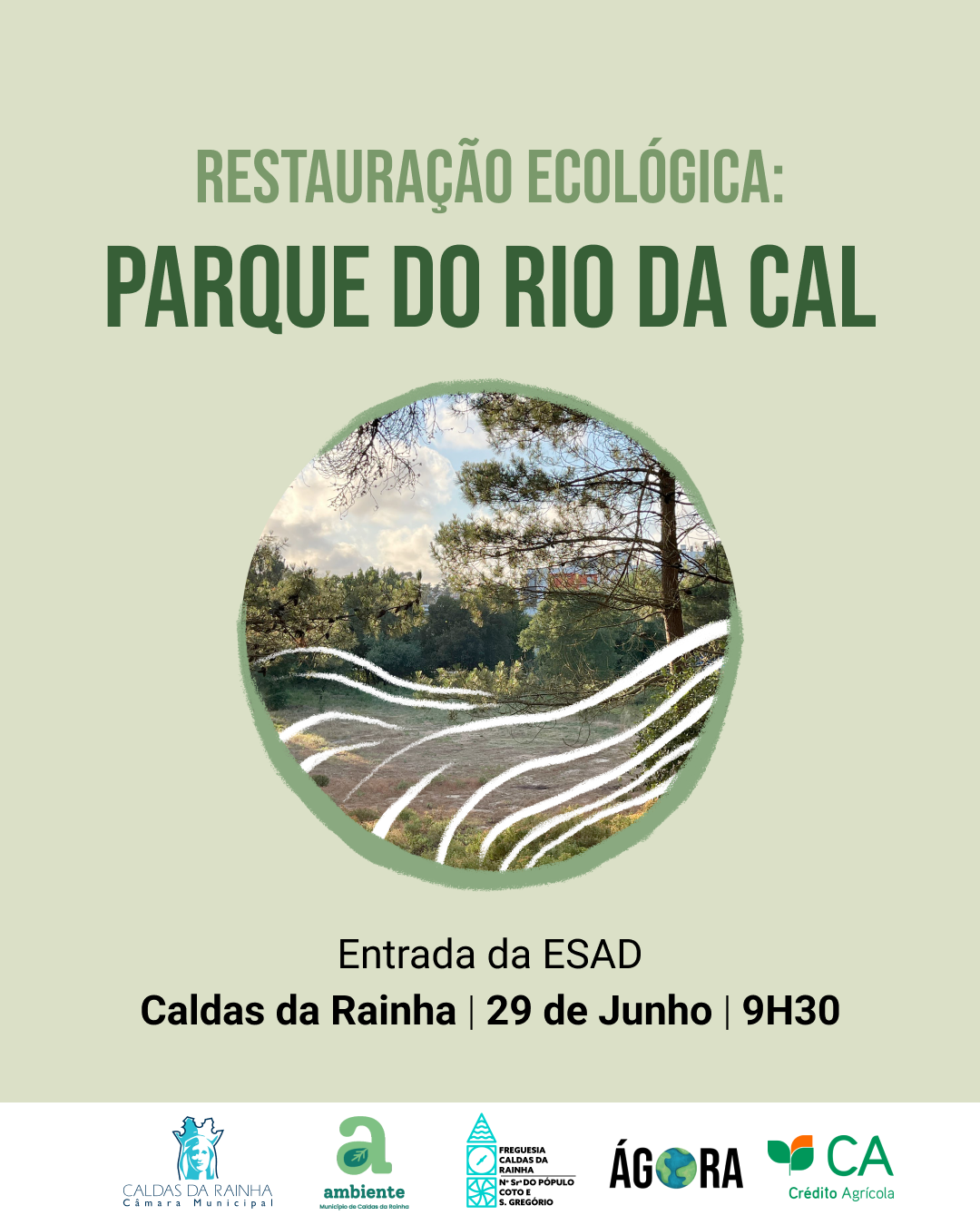 A Ágora – Associação Ambiental, em parceria com a União de Freguesias de Caldas da Rainha, Nossa Senhora do Pópulo, Coto e São Gregório, o Município das Caldas da Rainha e a Caixa de Crédito Agrícola, convidam a população a juntar-se no dia 29 de junho, pelas 09h30, na requalificação do espaço envolvente do Rio da Cal, linha de água importante junto a uma das principais entradas da cidade, frente à ESAD.CR.