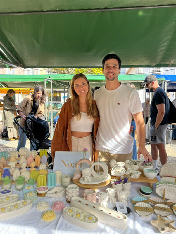 Uma das presentes foi “Noah”, projeto de Patrícia Simões e Gonçalo Onofre Silva, com artigos de decoração, velas de soja e resina ecológica. “Tenho feito todas as edições”, contou Patrícia, que começou o projeto “por brincadeira”. Mas sentiu que era uma boa oportunidade, passou por ecomercados e expandiu a marca.