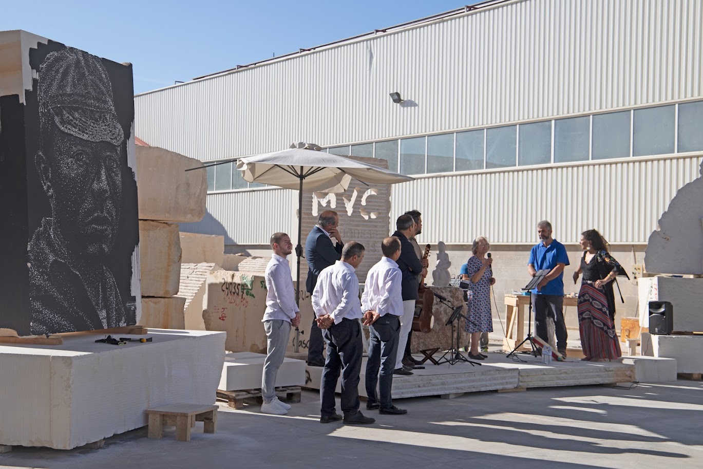 Os dois artistas prepararam obras em pedra para recordar o capitão e aempresa MVC cedeu material e instalações para o evento.