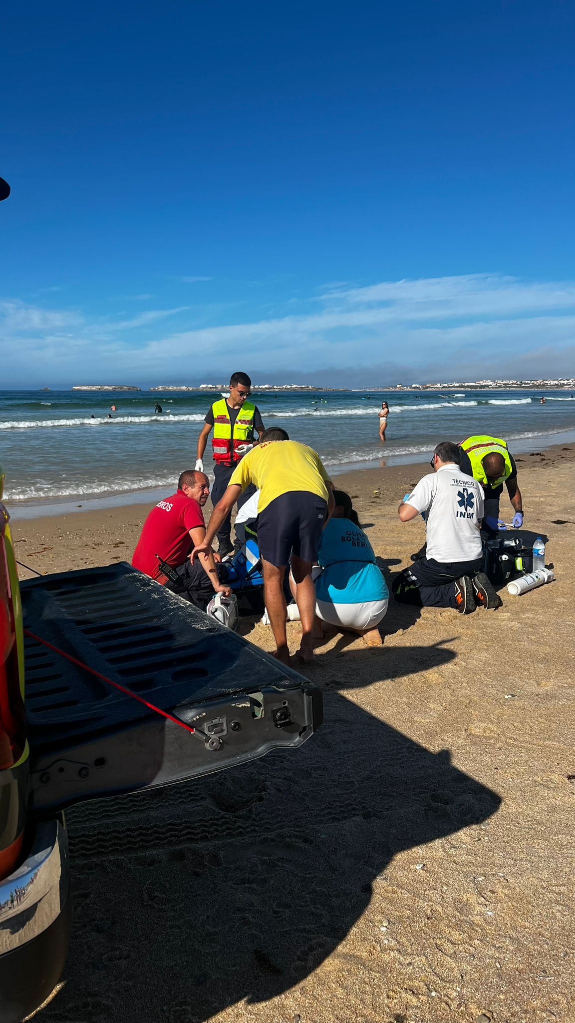 Na sequência de um alerta recebido pelas 17h45, através do nadador-salvador de serviço na praia, a informar que uma mulher estava em dificuldades na água, foram de imediato ativados para o local elementos do Projeto “SeaWatch” e da Polícia Marítima de Peniche, e elementos da ambulância de Suporte Imediato de Vida (SIV) do INEM e dos Bombeiros Voluntários de Peniche.