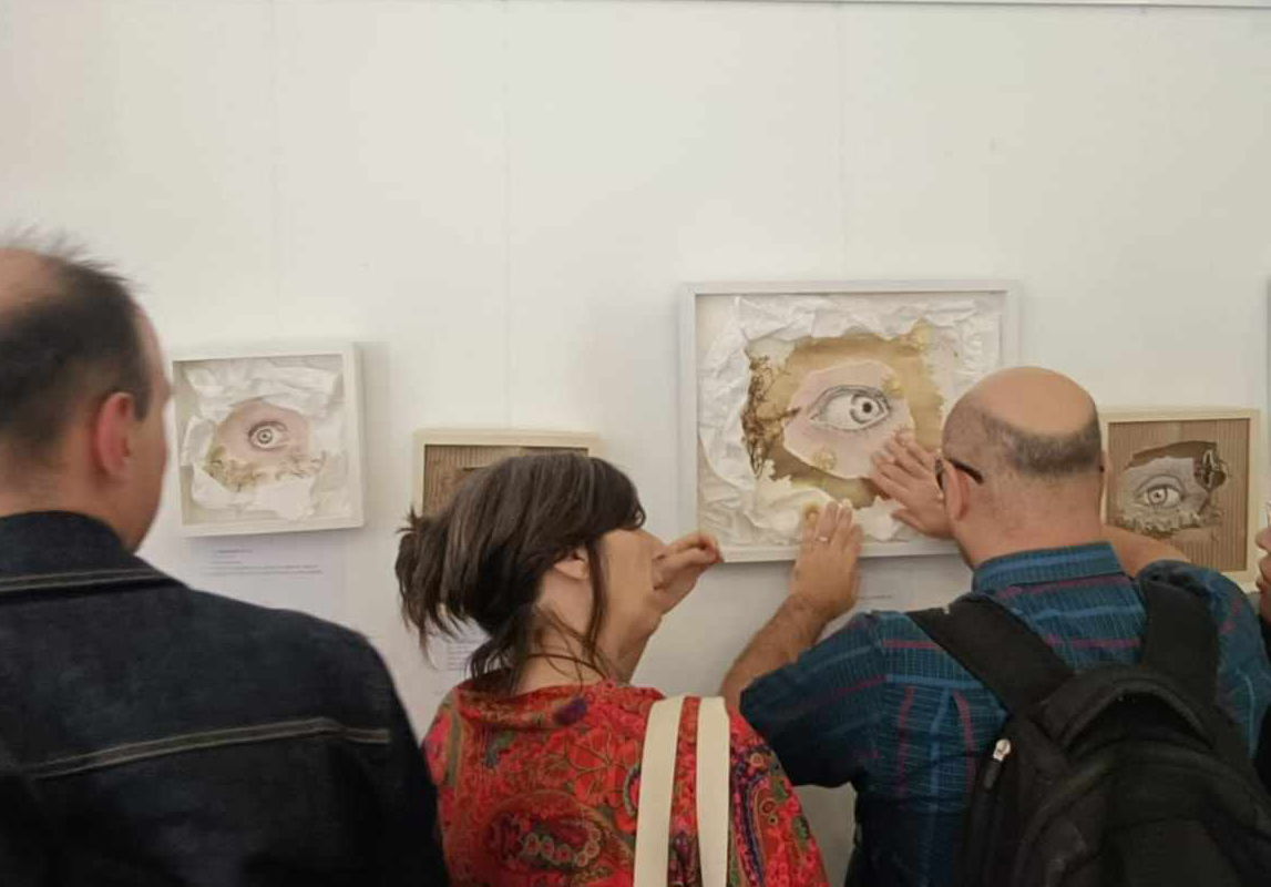 Nesta exposição, patente até 11 de outubro, as pessoas com baixa visão ou invisuais podem interagir com parte das obras expostas das artistas Leonor Borges de Carvalho e Zélia Évora.