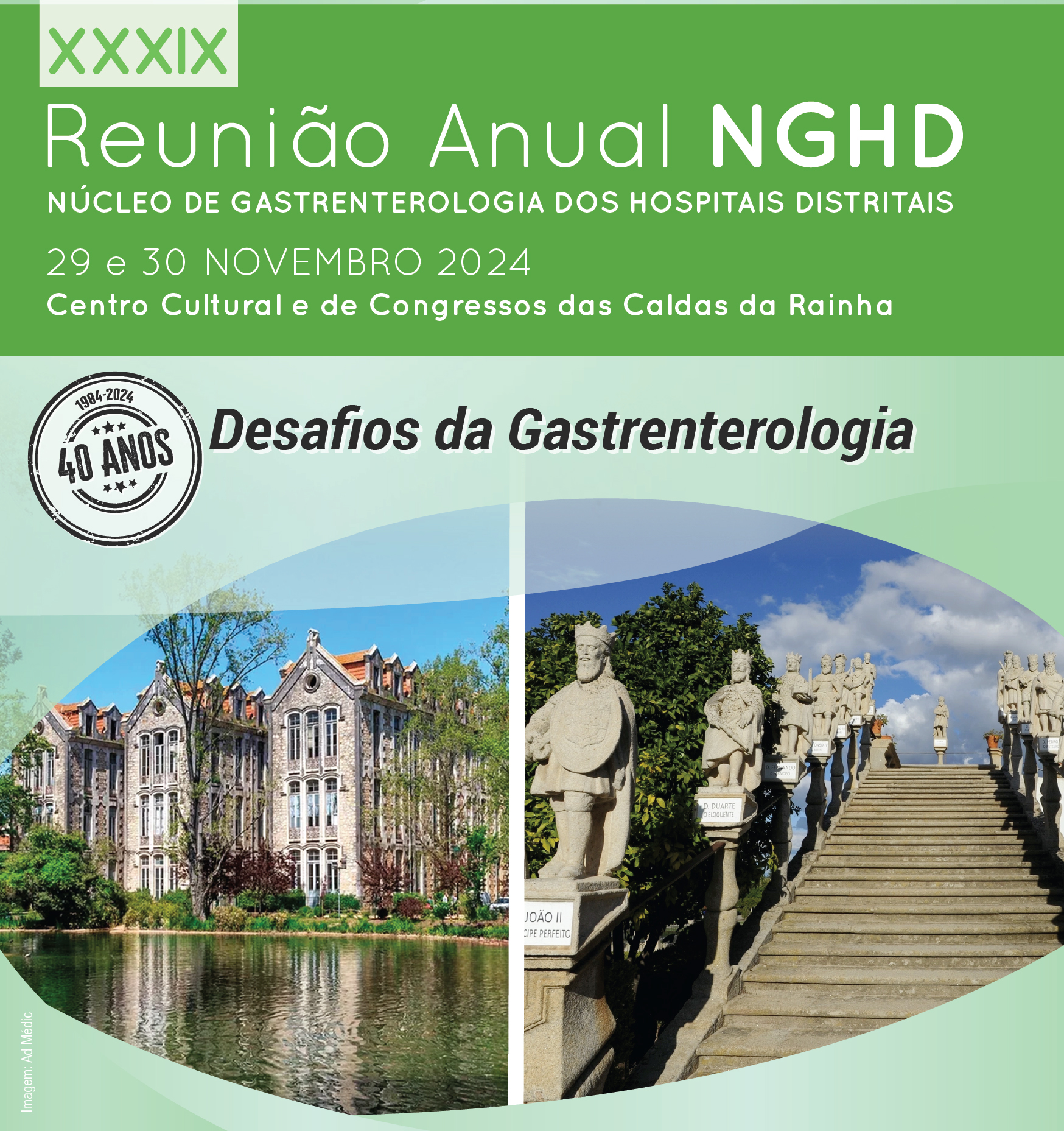 O Núcleo de Gastrenterologia dos Hospitais Distritais vai organizar nos dias 29 e 30 de novembro, no Centro Cultural e de Congressos de Caldas da Rainha, a sua XXXIX Reunião Anual, juntando os Serviços de Gastrenterologia de 34 unidades hospitalares do país.
