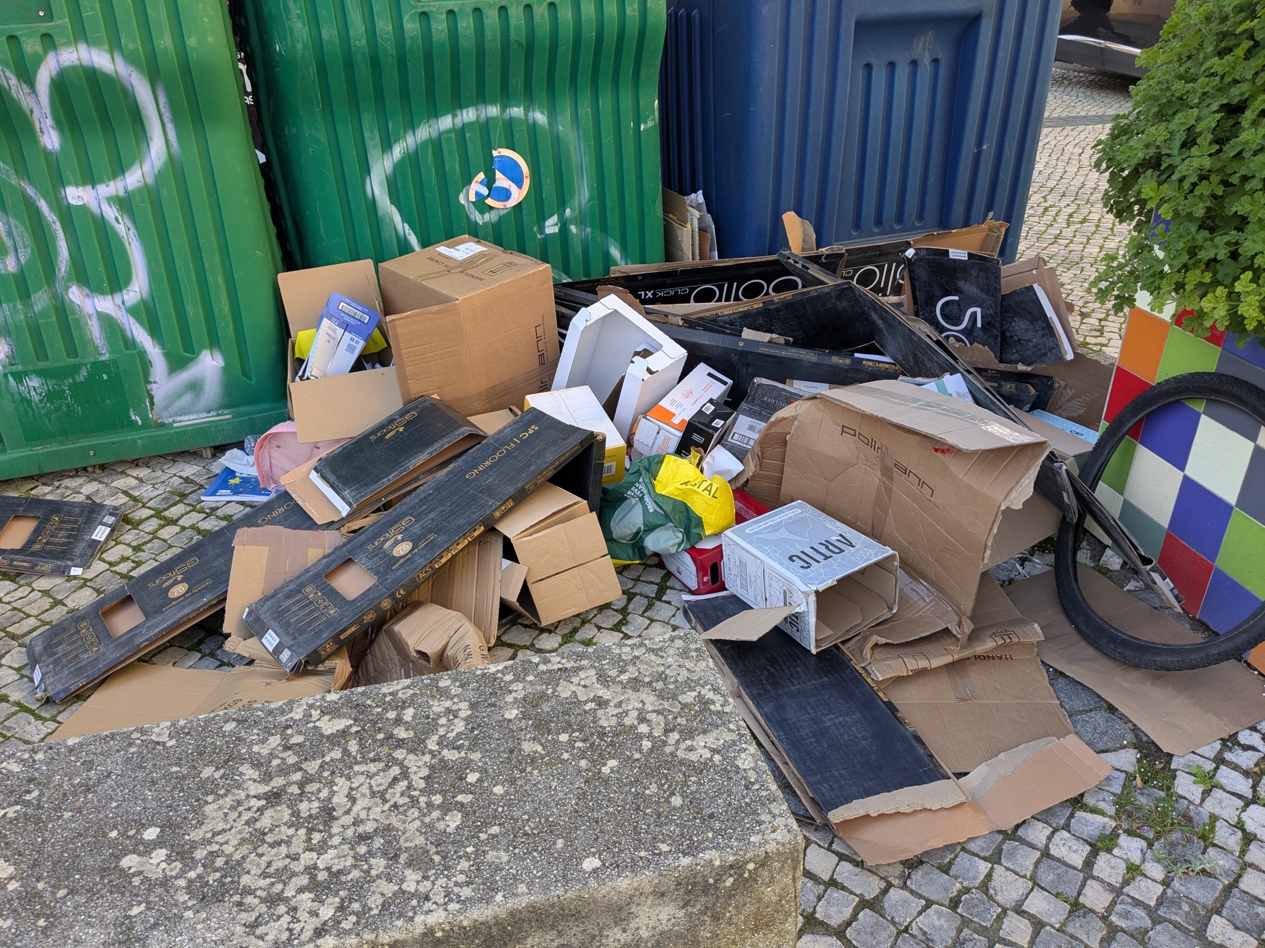 Moradores e comerciantes na Praça 5 de Outubro, nas Caldas da Rainha, têm-se queixado de que o lixo é deixado no chão, seja por desleixo das pessoas ou por os ecopontos estarem completamente cheios dias seguidos.