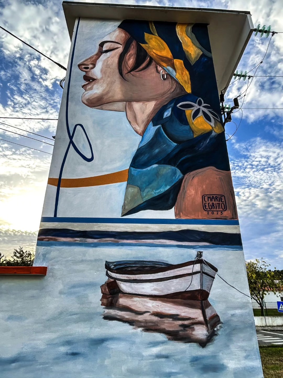 Segundo a Junta de Freguesia, a proposta dos dois artistas foi “procurando valorizar o Nadadouro e as suas gentes, focarmo-nos em alguns elementos típicos desta freguesia”. Assim, neste PT próximo das escolas foi criada “uma composição que fala de encontro, de partilha de conhecimentos antigos, na passagem de saberes ancestrais – a linha que atravessa gerações, que é sinónimo de continuidade, de legado, que une diferentes mãos em gestos repetidos, assim como as embarcações que pontuam a Lagoa de Óbidos”.