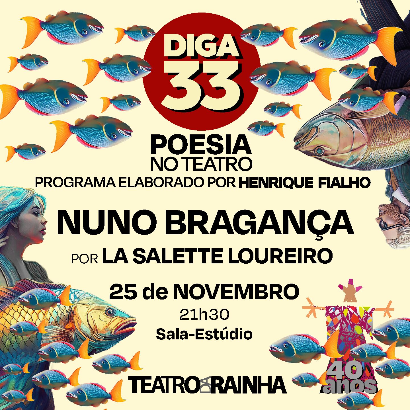 A Sala Estúdio do Teatro da Rainha é palco da iniciativa “Diga 33 - Poesia no Teatro”, no dia 25 de novembro, pelas 21h30, altura em que Nuno Bragança será recordado por La Salette Loureiro.