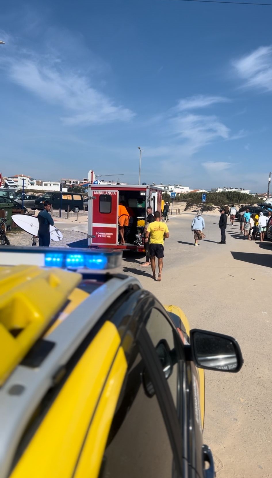 Em terra, no areal da Praia do Norte, foram prestados os primeiros socorros e Carlos Burle entrou em recuperação.