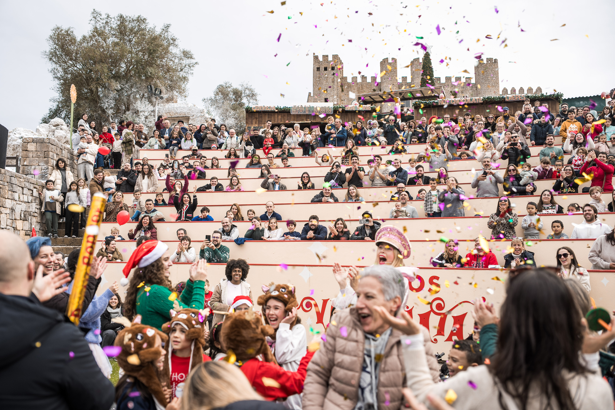 É uma coprodução do Teatro da Rainha com o Teatro das Beiras, “A Noite dos Visitantes” estreou na Covilhã e por lá andou em digressão, cumprindo uma dúzia de datas em diferentes freguesias do interior beirão. Esteve em cena, sempre com auditório lotado, na ruína da Antiga Casa da Cultura, nas Caldas da Rainha, durante uma semana consecutiva, percorrendo posteriormente uma mão cheia de freguesias caldenses. Espetáculo para todas as idades, esta peça popular escrita em verso é uma parábola divertida, mas séria, da guerra entre impérios.