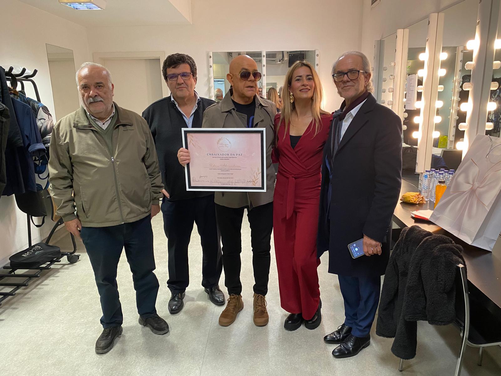 O responsável pelo grupo Amigos pela Paz de Rio Maior, António Fróis Rafael, entregou a distinção de Embaixador da Paz a Pedro Abrunhosa, justificando-a com o constante compromisso do artista com mensagens de paz nos seus concertos e canções.