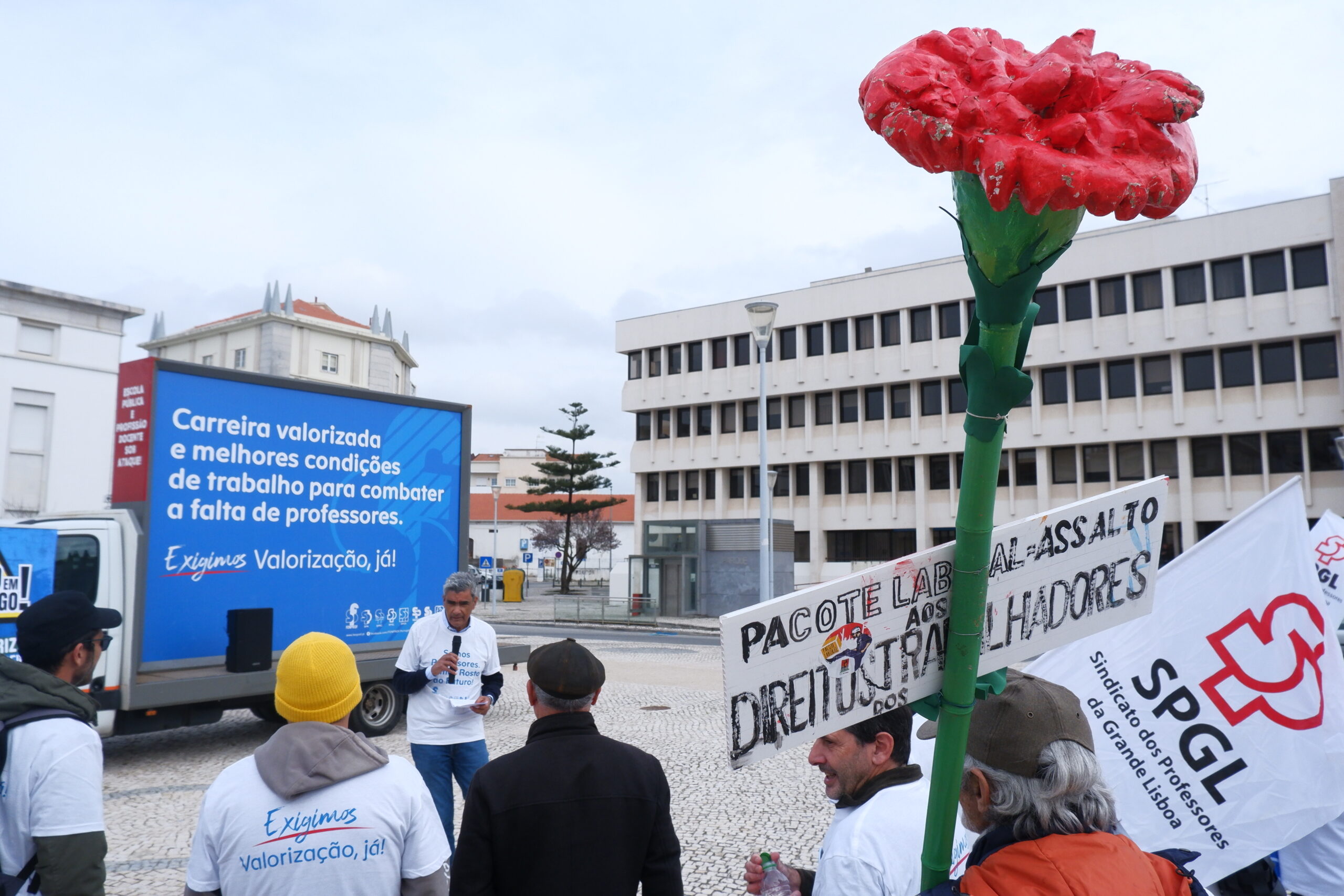 Seguiram-se ações no topo da Praça da República e no início da Rua D. João II, junto à rotunda dos Arneiros, antes da concentração final na Praça 25 de Abril, onde decorreu um plenário de rua com intervenção dos dirigentes sindicais.